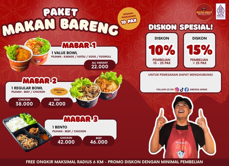 Nikmati program promo promo bersama dengan Beken Mirae, BBQ-BOWL & STEAK.